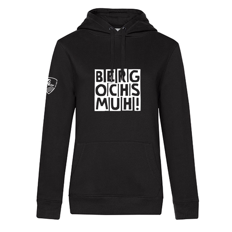 Mach dich bereit für Konfetti, Kostüme und jede Menge Spaß – mit deinem offiziellen Bergochs Damen Hoodie! 🎉🐂