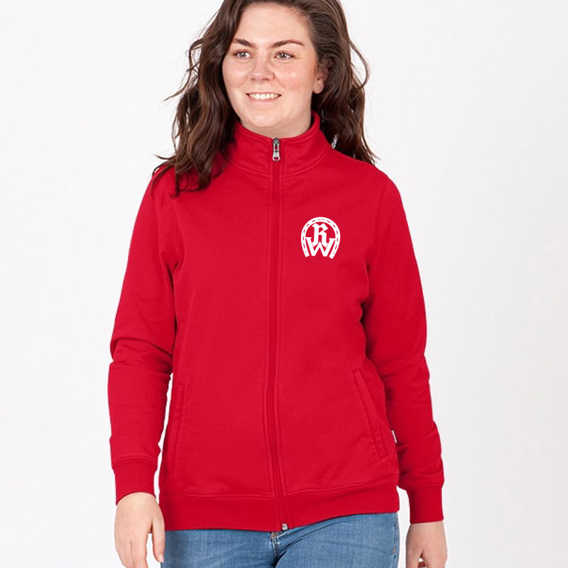 Für alle Reiterinnen und Pferdefreundinnen: Die JAKO Damen Sweatjacke Doubletex in marine oder rot mit Vereinslogo des LRFV Wattenscheid e.V. – ideal für Stall, Training & Turnier.