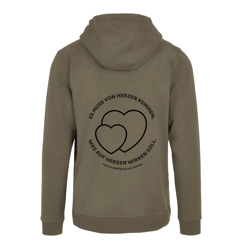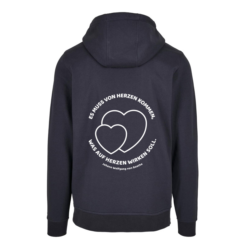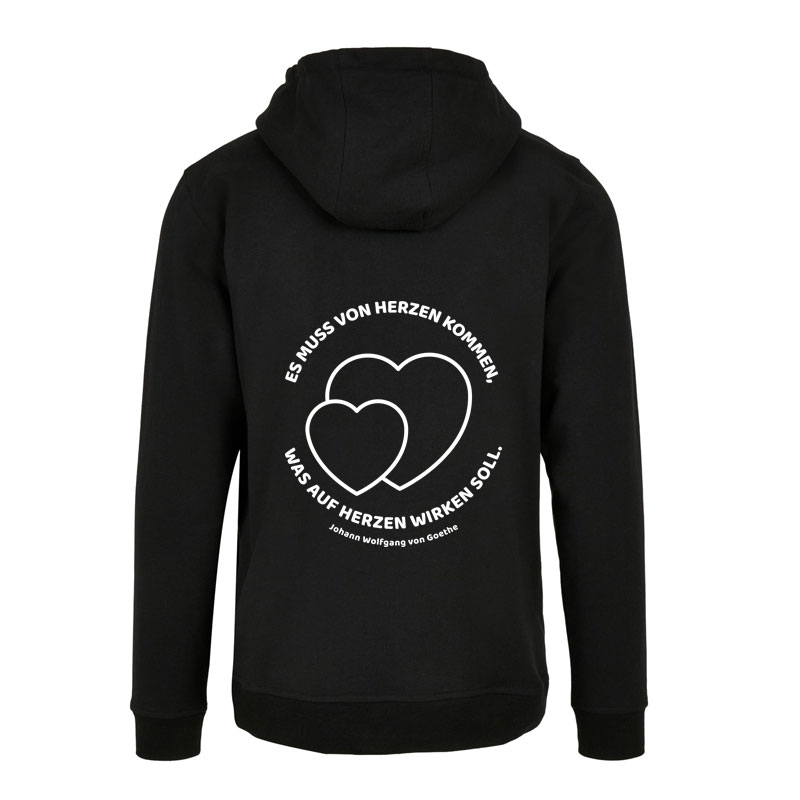 Lässig, bequem und mit einer Botschaft, die wirkt: Der Oversized Hoody des Goethe-Gymnasiums Dortmund trägt auf dem Rücken das Goethe-Zitat „Es muss von Herzen kommen, was auf Herzen wirken soll.“